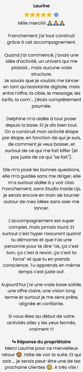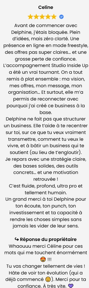 → C’est exactement pour ça que j’ai créé Studio Inside Up : Un accompagnement de Mentoring business hybride, incarné, humain et sur-mesure.