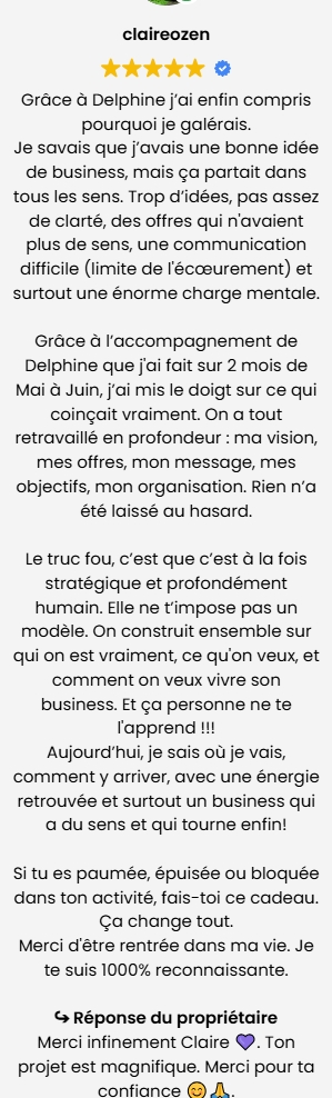 Épuisement + crise de sens → je me forme, je teste, je cherche ma façon de faire du business autrement.
